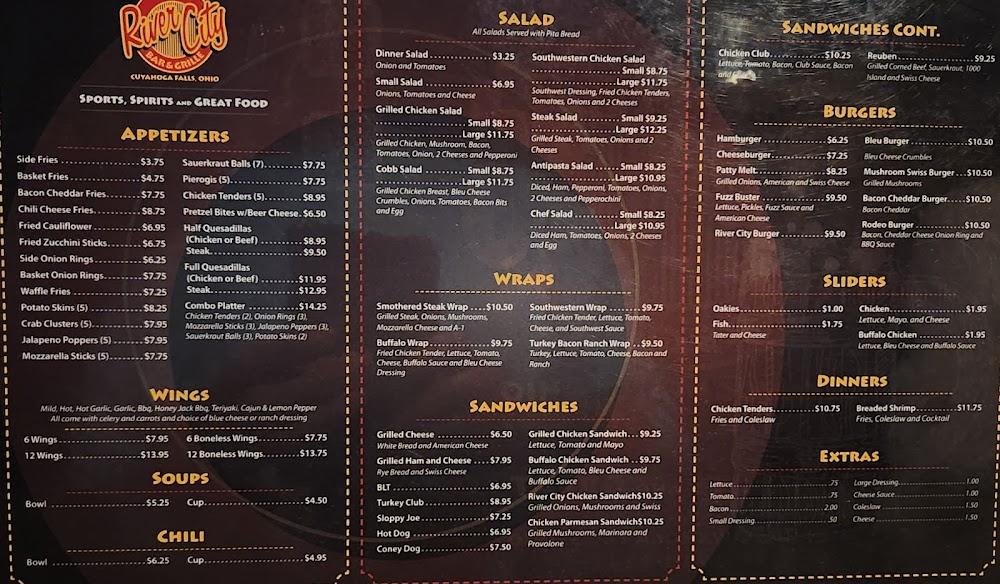 Welcome to River City Bar & Grille, your go-to destination in Cuyahoga Falls for delicious grill-style dining! Located at 2621 Bailey Rd, we offer a cozy atmosphere perfect for breakfast, lunch, or dinner. Enjoy our extensive menu featuring local specialties, small plates for sharing, and a wide selection of drinks, including excellent cocktails and craft beers. Whether dining in or ordering takeout, our quick service and happy hour specials enhance your experience. With wheelchair-accessible facilities and a vibrant sports ambiance, River City Bar & Grille is perfect for solo diners, families, and anyone looking to unwind. Join us today!